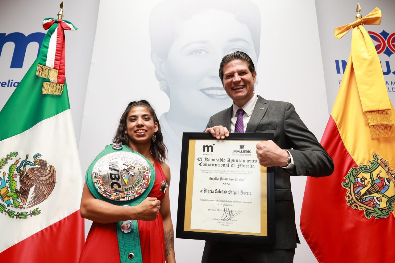 En su oportunidad, la boxeadora, Soledad Vargas, refirió que ser la primera michoacana campeona mundial de boxeo es un reflejo del esfuerzo colectivo, en sus horas de entrenamiento, sacrificio y determinación, pero va más allá al subir al ring y llevar los nombres de las mujeres víctimas de feminicidio por lo que refirió que se debe seguir con la lucha contra la violencia de género.