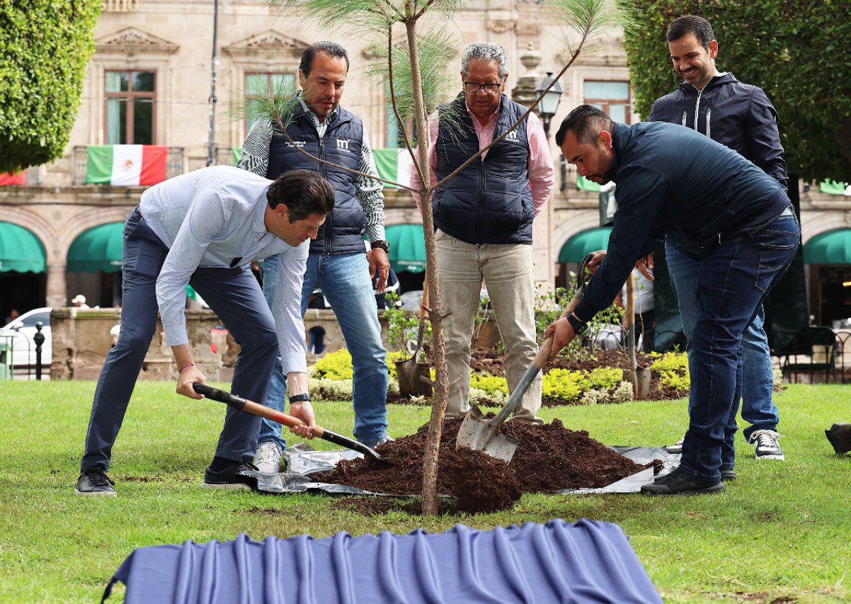 El árbol, de la especie Pino Michoacano, fue seleccionado mediante una dinámica en redes sociales del Presidente Municipal, en la que cientos de morelianas y morelianos decidieron las características de la planta que sería colocada simbólicamente en la Plaza de Armas del centro de la ciudad.
