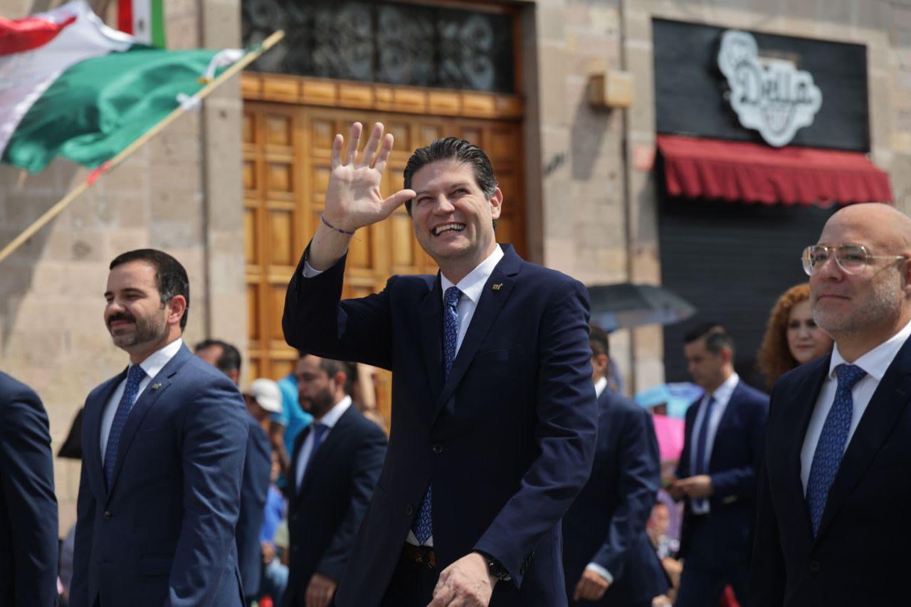 Posteriormente, el Alcalde, Alfonso Martínez, subió al balcón de Palacio de Gobierno para disfrutar del recorrido integrado por las fuerzas armadas, así como instituciones educativas, rescate y salvamento.
