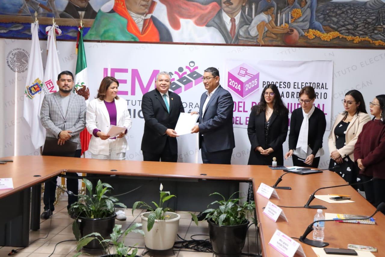 Morelia, Michoacán, a 12 de febrero del 2025.- Con la certeza de que el proceso para la elección de magistradas y magistrados, jueces y juezas, del Poder Judicial de Michoacán, se ha desarrollado con pulcritud, transparencia y eficacia, el Congreso del Estado de Michoacán hizo entrega al Instituto Electoral de Michoacán (IEM), el listado de las personas candidatas que participarán en esta elección.