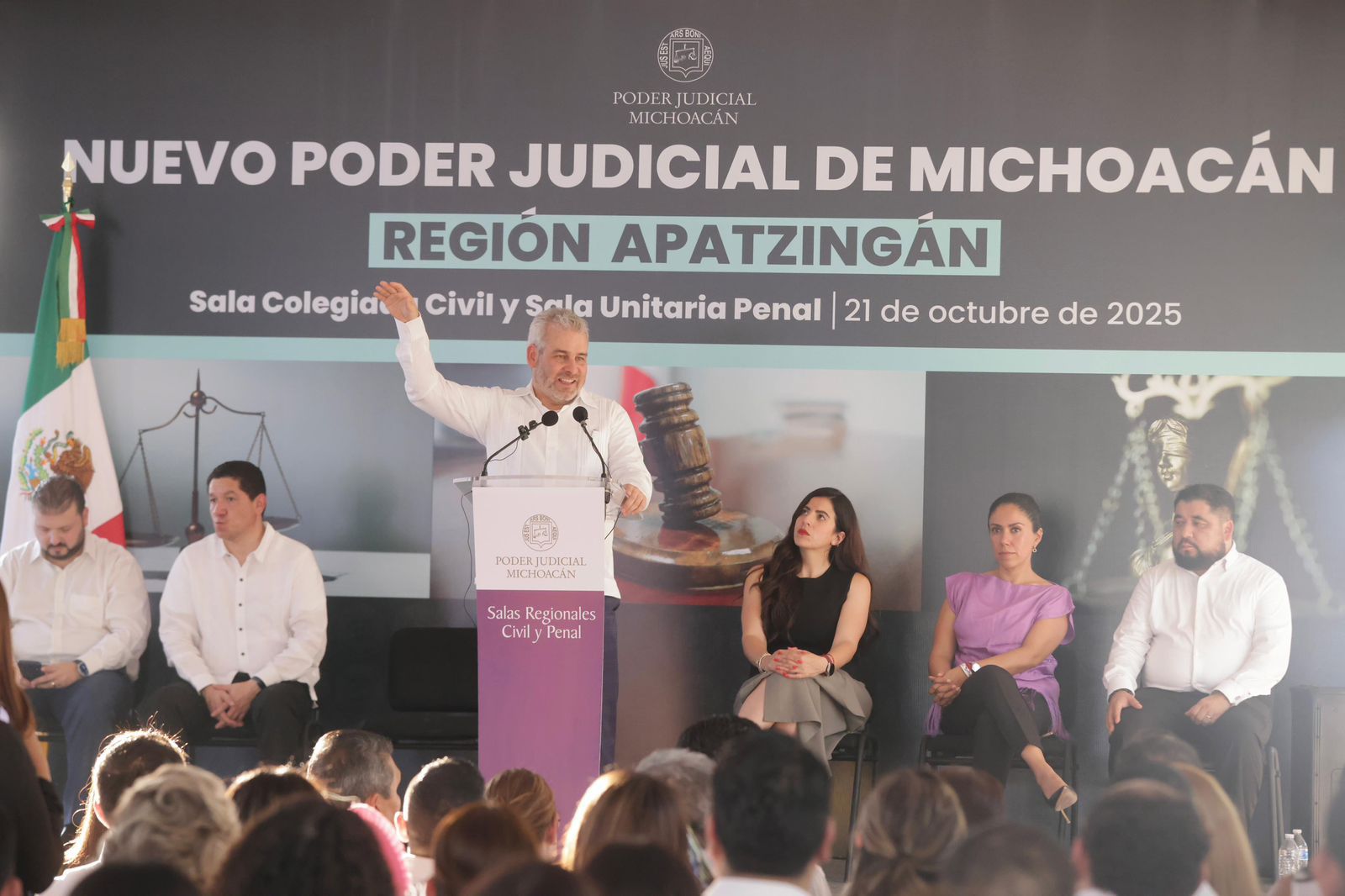 “Descentralizamos el Poder Judicial”, destacó el mandatario, quien detalló que la ciudadanía de la región Apatzingán ya no tendrá que trasladarse hasta Morelia para acceder a la justicia, como ya también ocurre en las zonas de La Piedad, Zamora, Zitácuaro, Uruapan y Morelia.