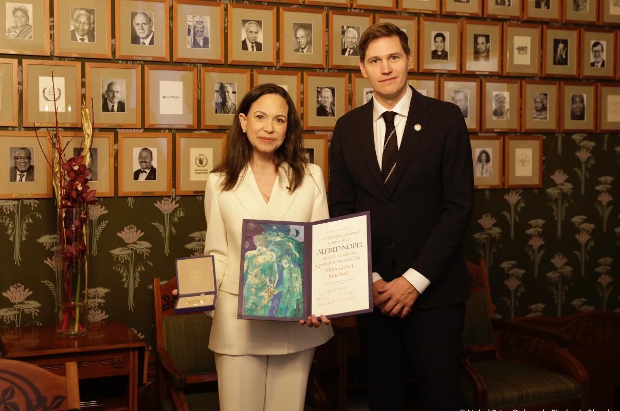 En representación de su mamá que no alcanzó a llegar, María Corina Sosa, leyó un discurso, desde la sede del premio Nobel de la Paz en Noruega, que no tiene desperdicio.