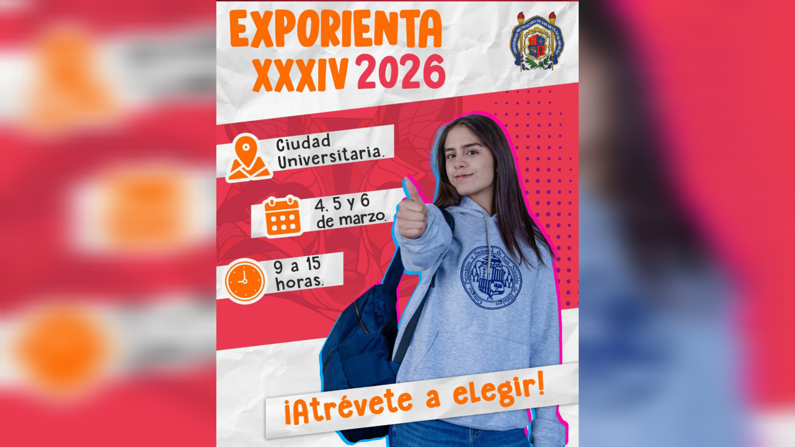 La ExpOrienta 2026 se realizará los días 4, 5 y 6 de marzo en las instalaciones de Ciudad Universitaria de las 9:00 a 15:00 horas, es un evento totalmente gratuito para estudiantes del bachillerato nicolaita, de escuelas incorporadas a la UMSNH, para alumnado de otras instituciones educativas de Morelia y del interior del estado, así como público en general.