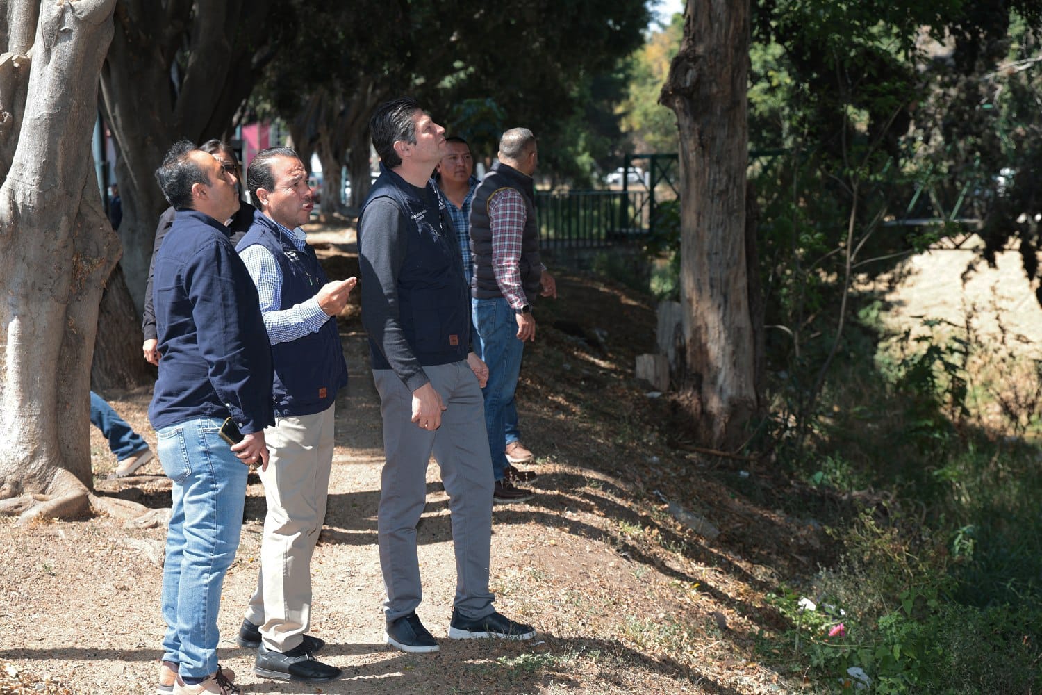 Durante la supervisión, el Alcalde puso especial atención en instruir el clareo de luminarias, ya que las ramas en crecimiento impedían el funcionamiento adecuado del alumbrado público, afectando la visibilidad y seguridad vial en la zona.