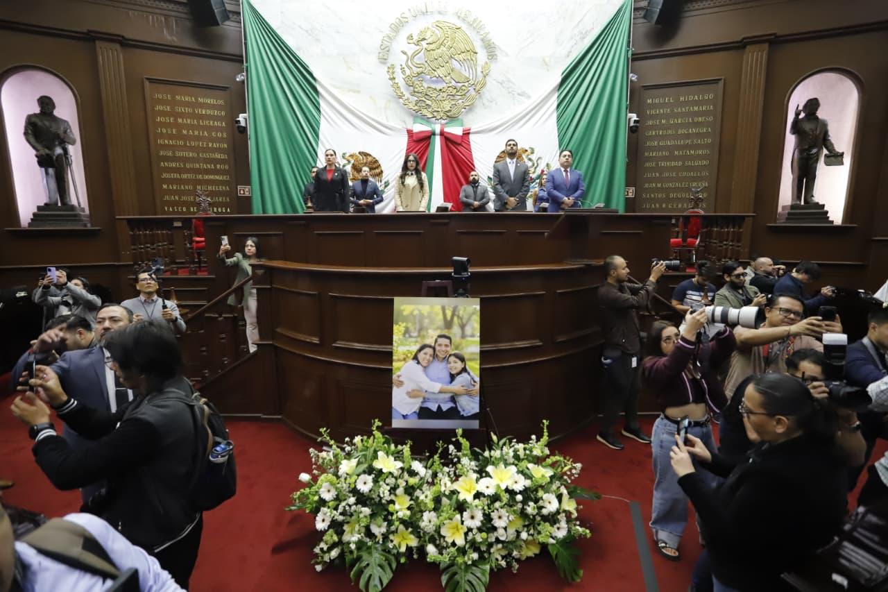 Morelia, Michoacán, a 4 de febrero del 2026.- Previo al inicio de la sesión programada para este miércoles, diputadas y diputados integrantes de la 76 Legislatura, rindieron homenaje póstumo y guardaron un minuto de silencio por el sensible fallecimiento de Víctor Manuel Mujica Vega y Anayeli Hernández León, intérpretes de Lengua de Señas Mexicana y compañeros trabajadores de este Poder Legislativo, así como de su hija Megan Mujica Hernandez.