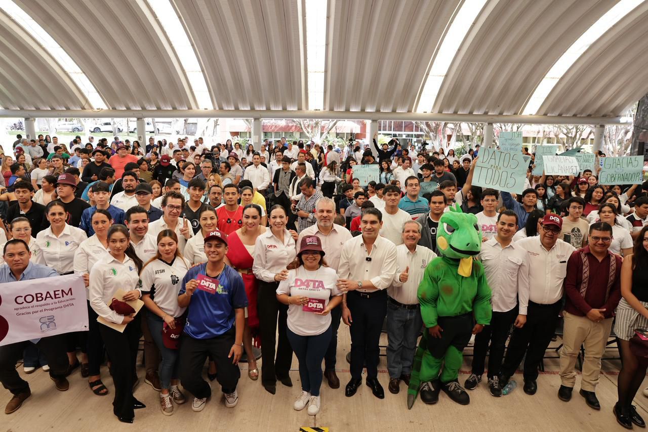 Huetamo, Michoacán, 20 de marzo de 2026.- Más de 115 mil estudiantes de preparatorias, institutos tecnológicos y universidades públicas del estado se han registrado al Programa D4TA, Datos Gratis, para gozar de cuatro gigabytes de internet al mes en su celular, así como mensajes, llamadas y redes sociales ilimitadas, sin costo, para que no vean limitados sus estudios, informó el gobernador Alfredo Ramírez Bedolla.