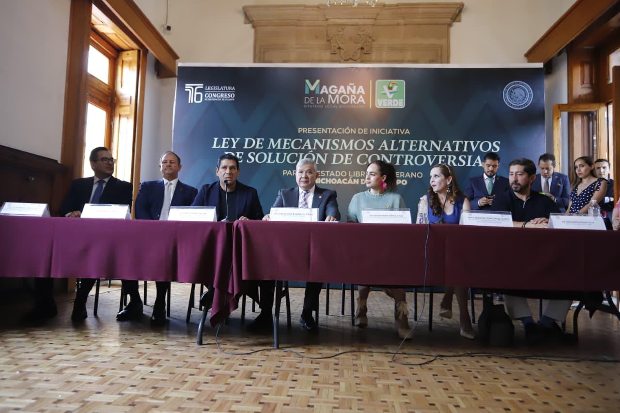 Morelia, Michoacán, 16 de abril de 2026.- Con la Ley de Mecanismos Alternativos de Solución de Controversias para el Estado Libre y Soberano de Michoacán de Ocampo se evitarían juicios largos, complicados y desgastantes, al abrir una puerta al diálogo para encontrar soluciones favorables a ambas partes, explicó el diputado Juan Antonio Magaña de la Mora, integrante del Grupo Parlamentario del Partido Verde Ecologista en el Congreso del Estado.
